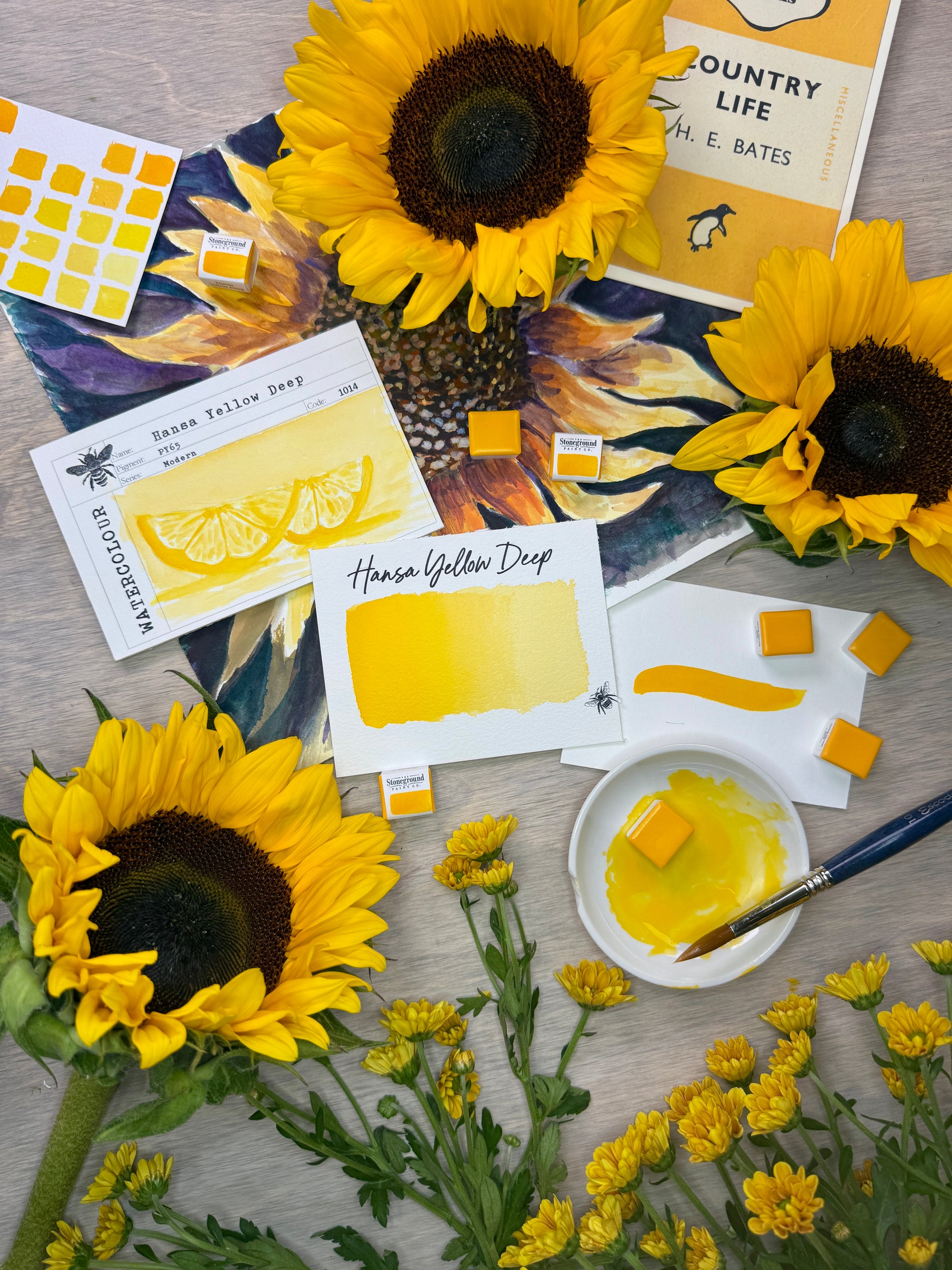 A bright primary yellow, and a versatile all-around workhorse, Hansa Yellow mixes well with other watercolours, and is the perfect replacement for toxic Cadmium pigments. Hansa Yellow is one of our best-selling colours, working well in landscapes, botanicals, still life compositions, and illustration work.