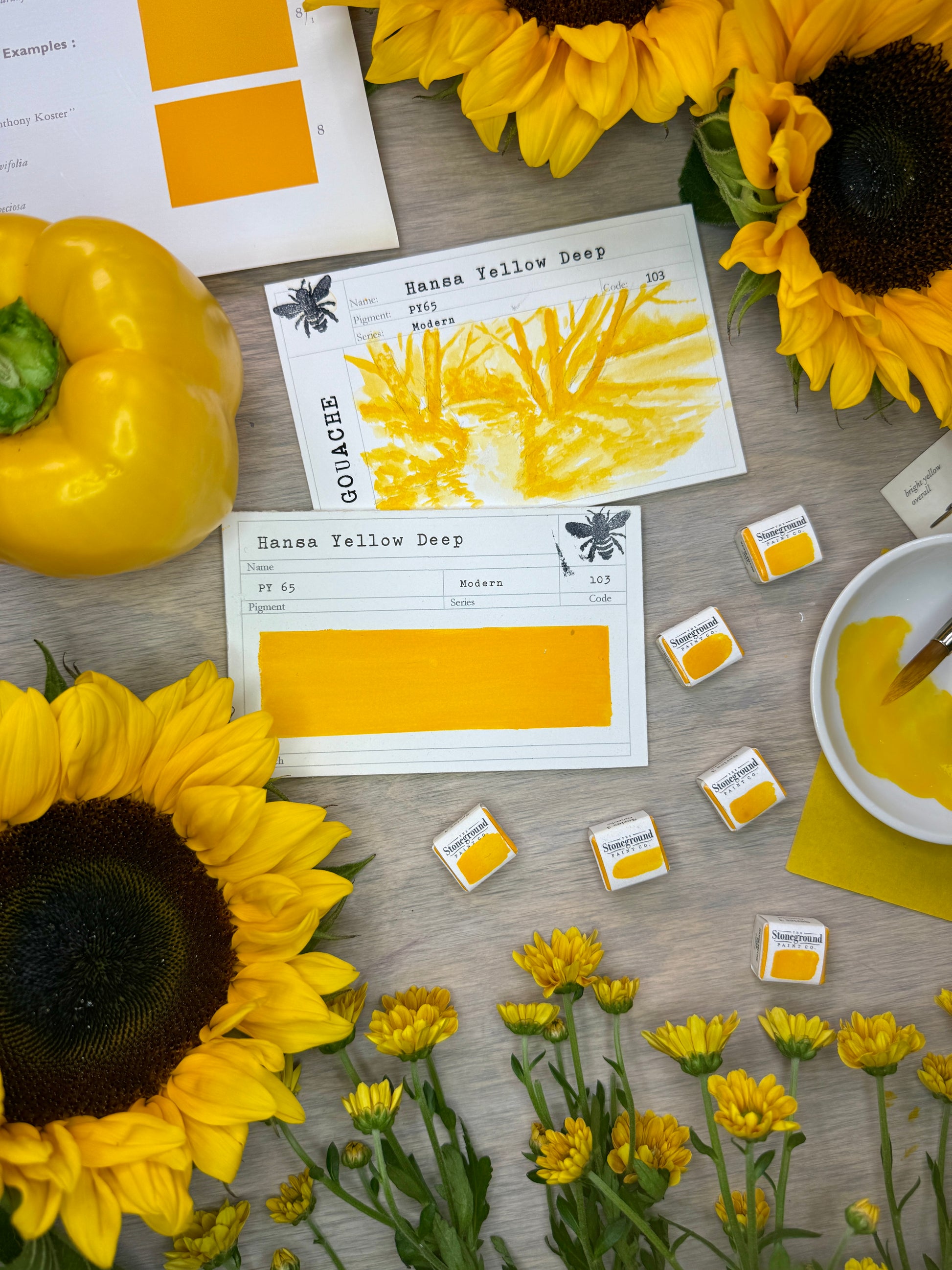 Artist Notes: Hansa Yellow Deep is an excellent complement to any gouache palette suiting a variety of subject matter including botanicals, florals, landscapes, still life, and illustration work.