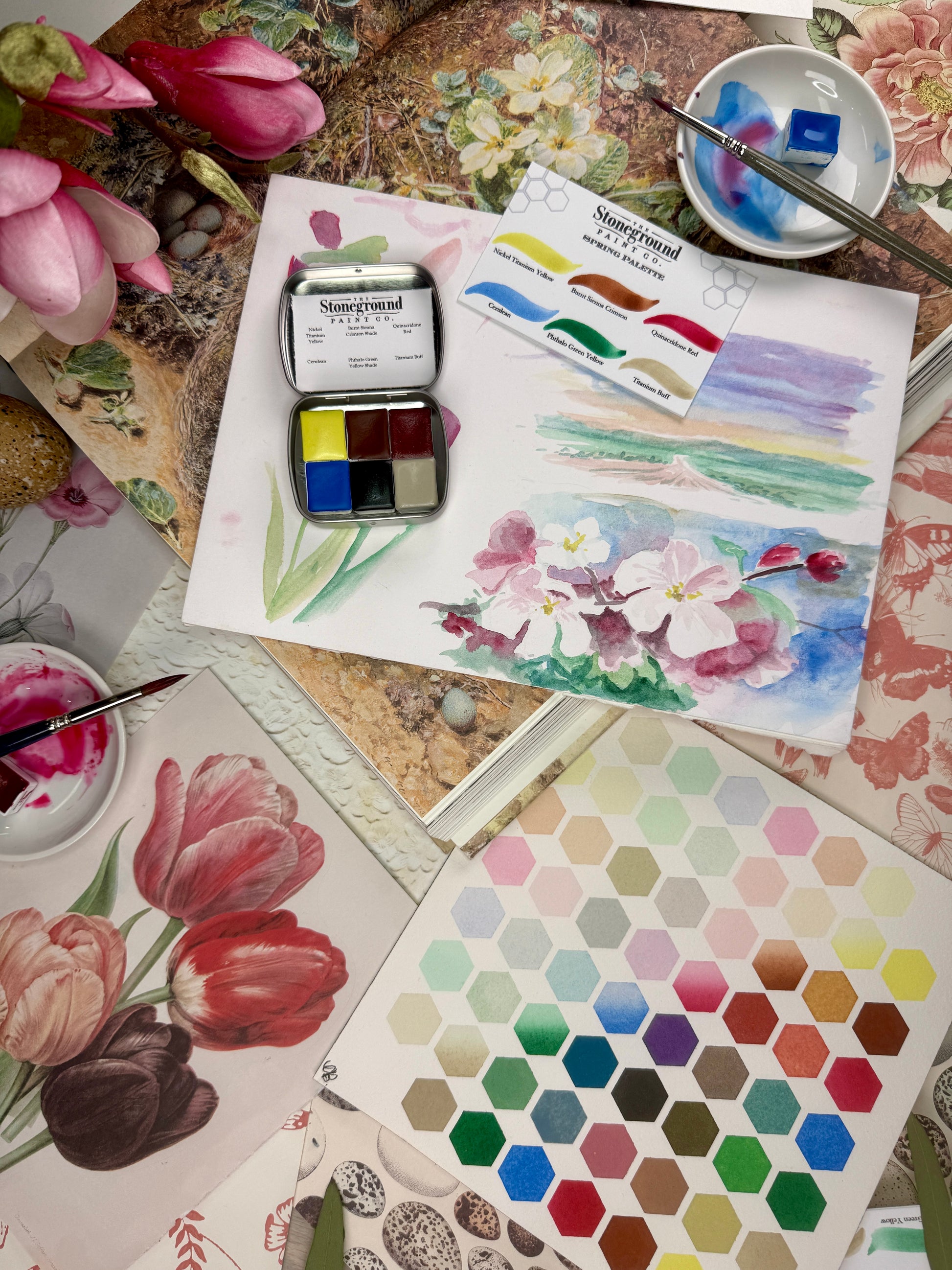 Stoneground’s Spring Palette is a collection of colour perfect for a variety of subject matter including sunny landscapes, brilliant florals, elegant botanicals and cheerful still life paintings.