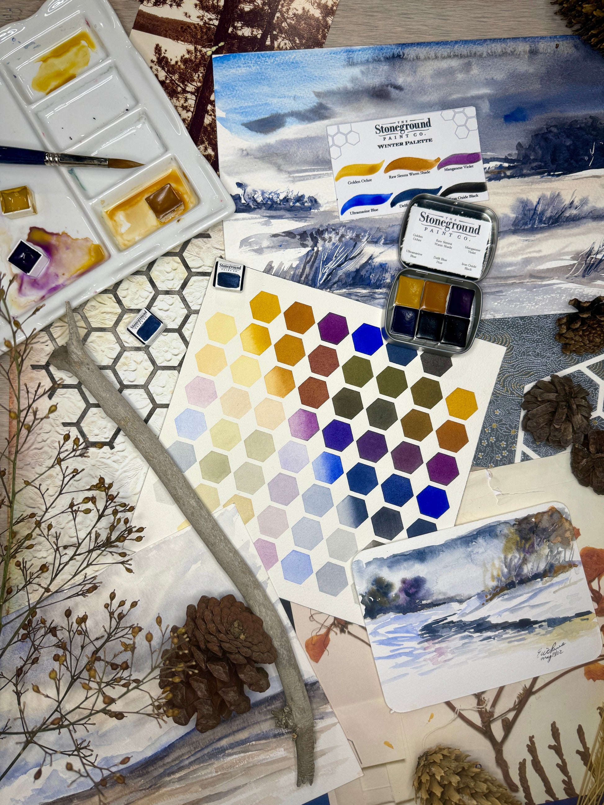 Stoneground’s Winter Palette is a collection of warm and cool colours that mix well, resulting in a versatile palette that is effective for painting everything from dramatic Dutch-inspired still life compositions, to delicate florals and bold landscapes no matter the season.